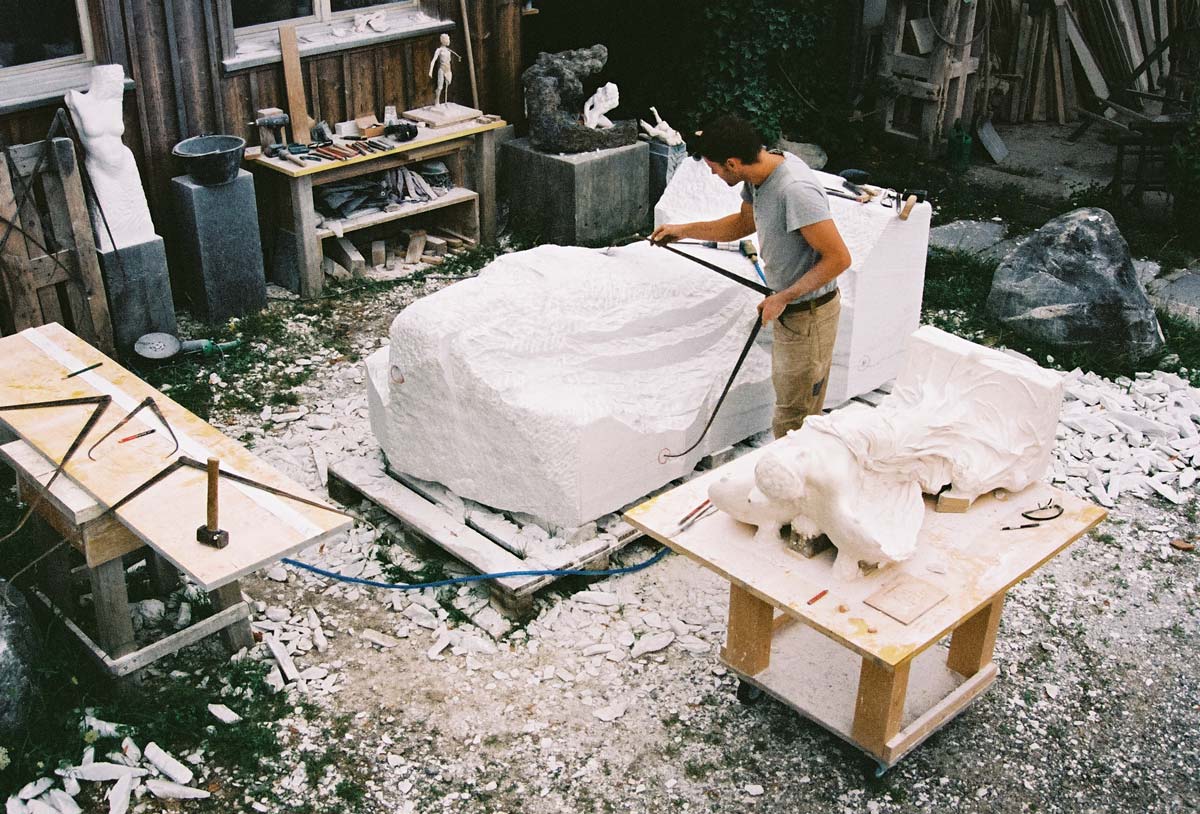 Aus weissem Cristallina Marmor entsteht diese einzigartige Skulptur für ein Museum im Bergell. Sie wird voraussichtlich im Frühling 2027 vollendet sein.